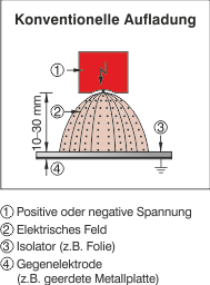 需要合适的对电极来给各种材料充电。如果通过机器本身的金属不存在这种情况,则必须例如 B.由电离棒产生。
